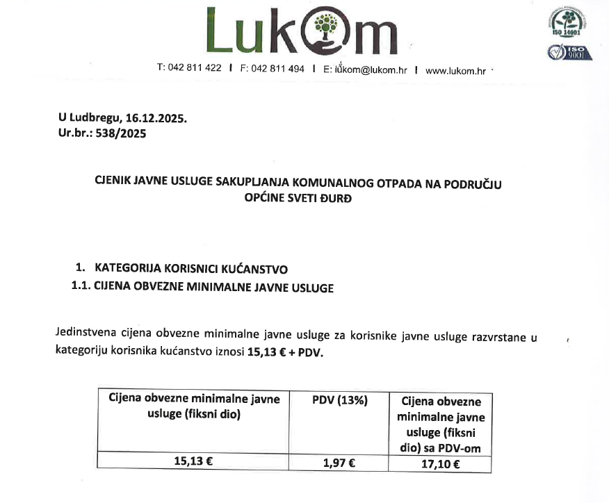 Novi Cjenik komunalnih usluga dostupan je na sljedećem linku: CJENIK KOMUNALNIH USLUGA